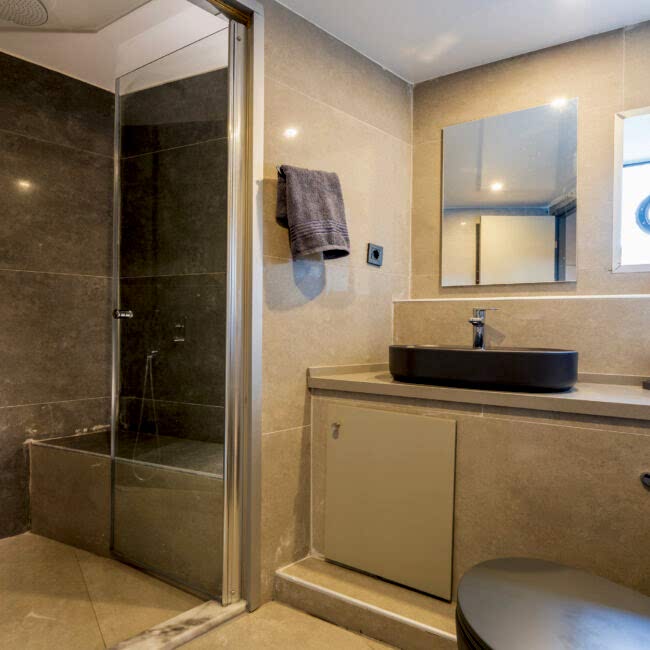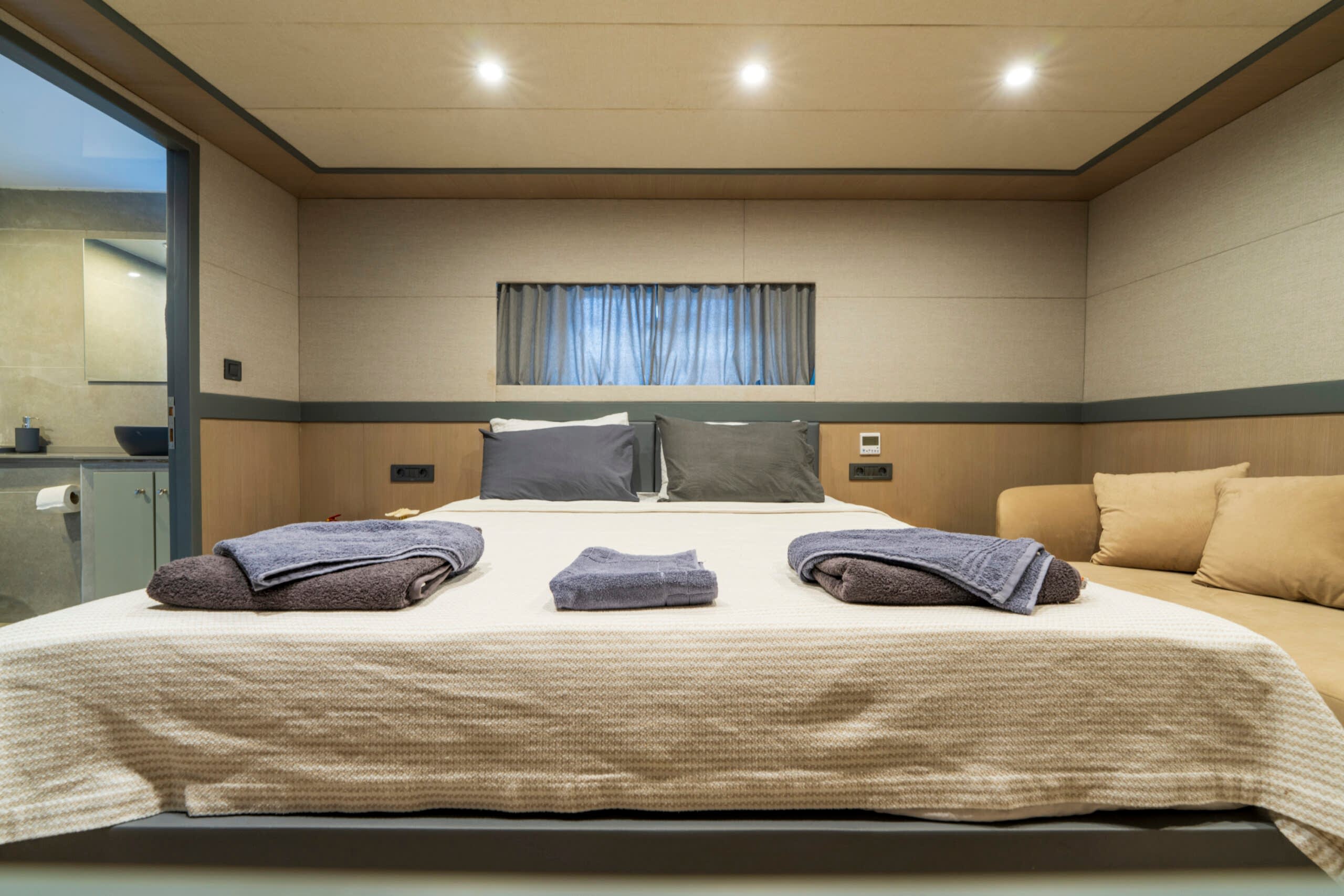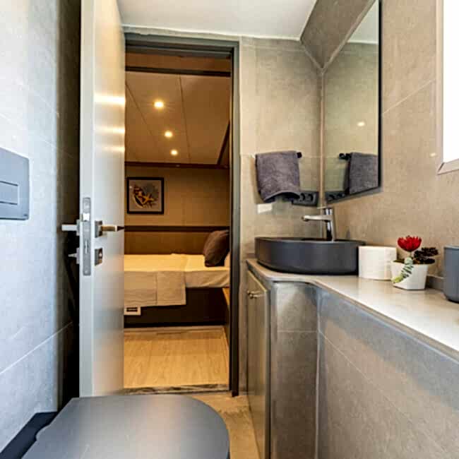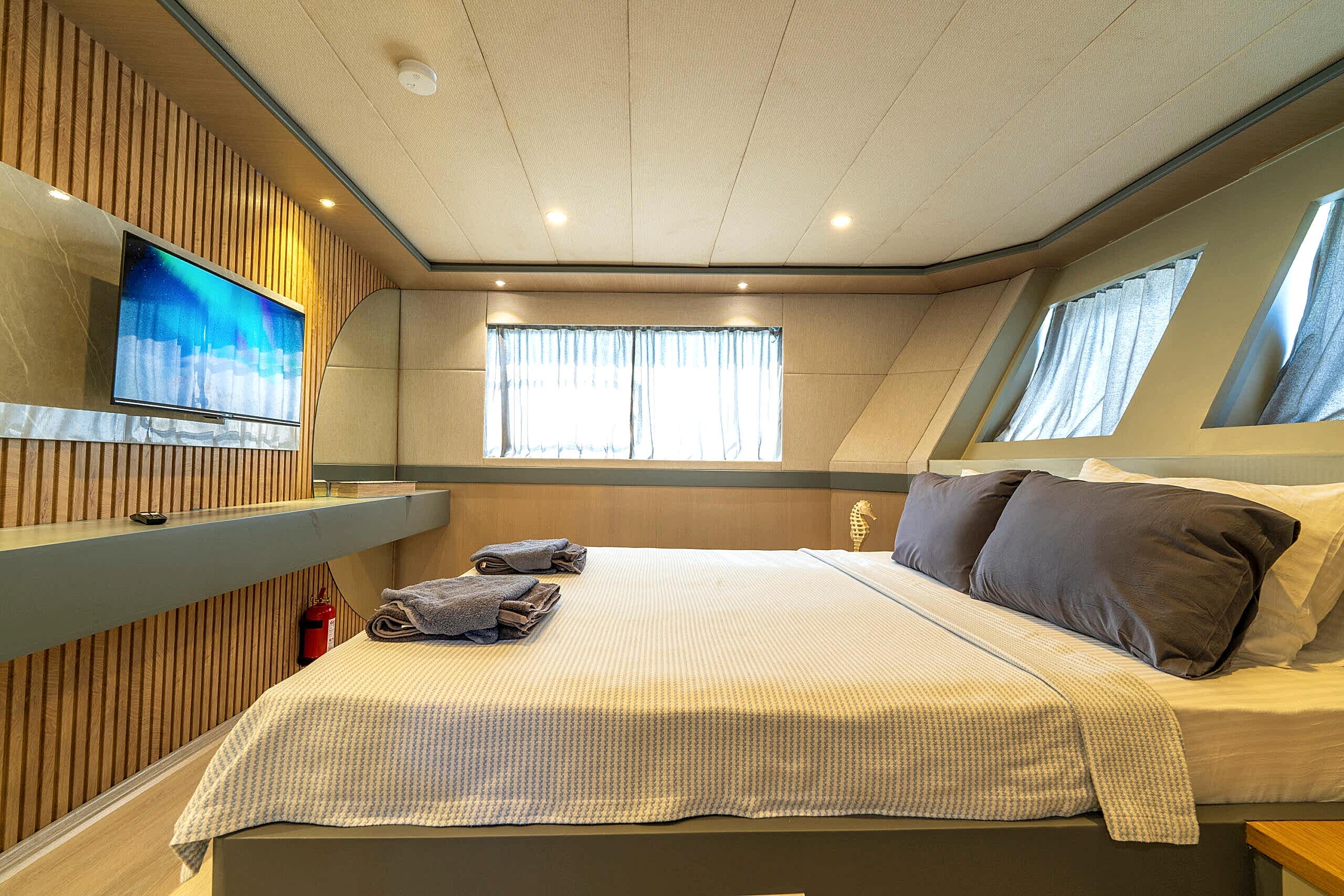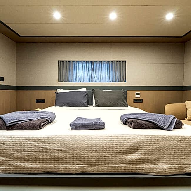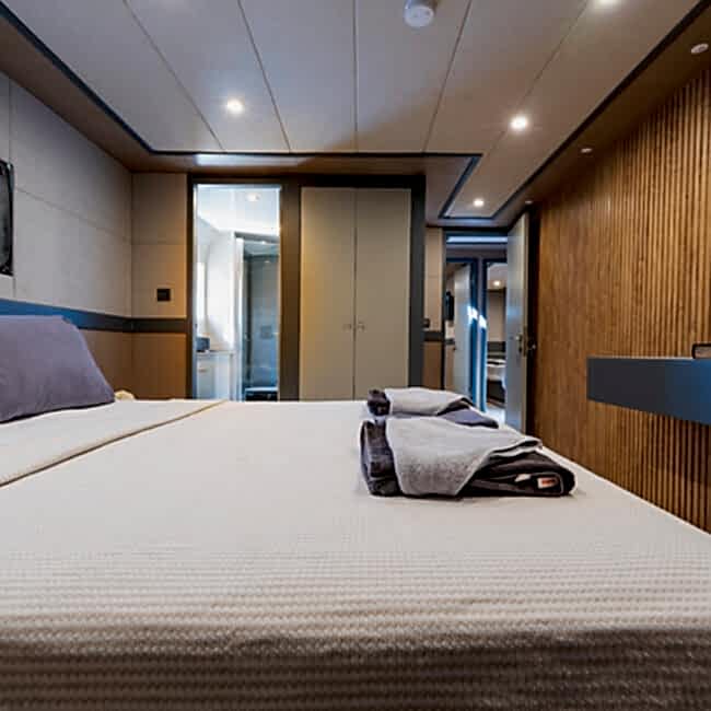1 master , 4 double ve 1 twin kabini olmak üzere birbirinden şık ve rahat, kendine ait duş, WC ve kliması olan yatımız 6 kamaraya sahiptir.