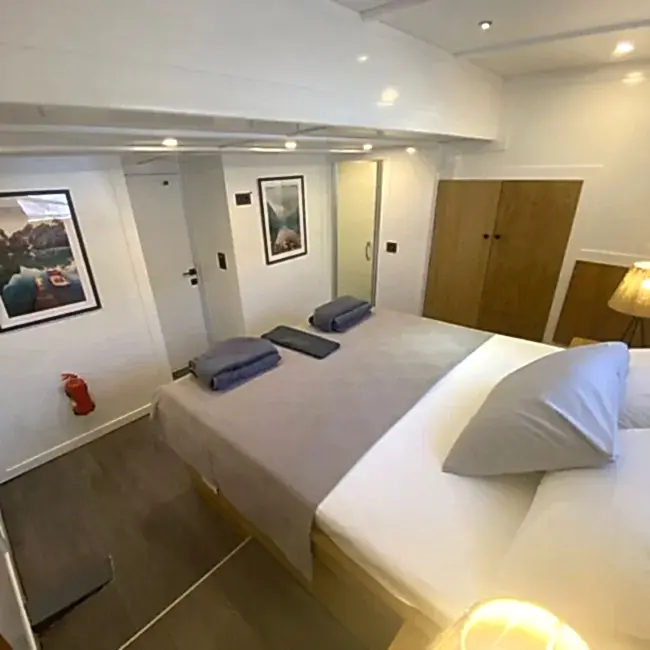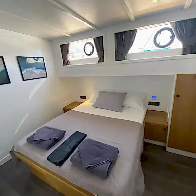 1 master , 4 double kabini olmak üzere toplam 5 adet kendine ait duş, WC ve kliması olan kabinlere sahiptir.