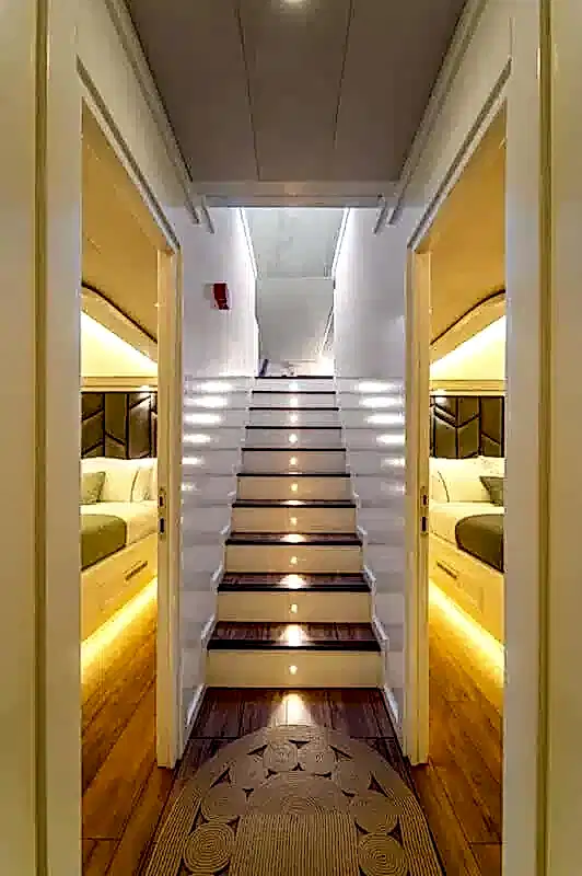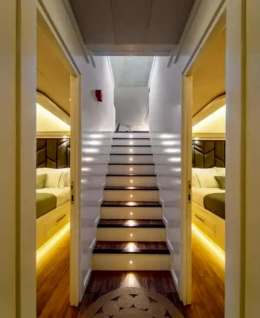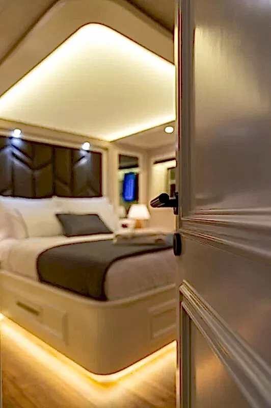 40 metre uzunluğunda, 8.30 metre genişliğindeki süper lüks yat, 2 Master, 3 Double, 1 Twin kabinde toplam 12 misafir ağırlayabilmektedir.