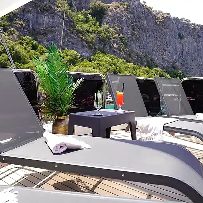 Ayrıca güvertede bulunan jakuzi ile kendinizi beş yıldızlı otelde hissedip tatilinize renk katabilirsiniz.